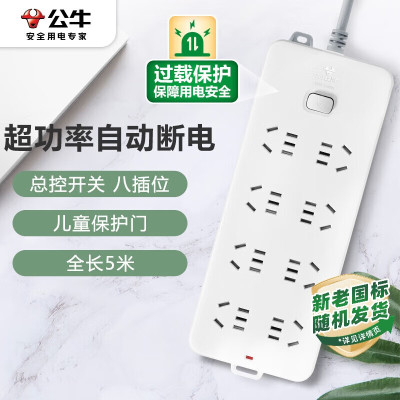 公牛 GN-403 八位 总控5米 新国标 插座插线板插排 一个装