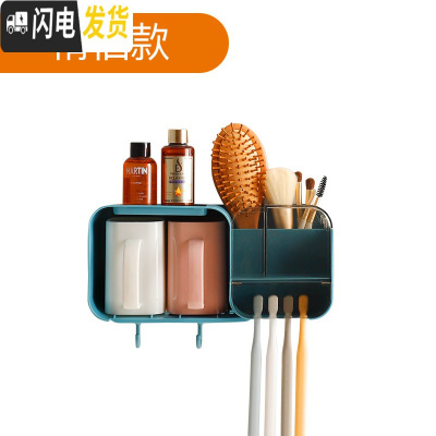 三维工匠卫生间牙刷架套装壁挂洗漱架挤牙膏免打孔置物架漱口杯牙具收纳架 两口情侣