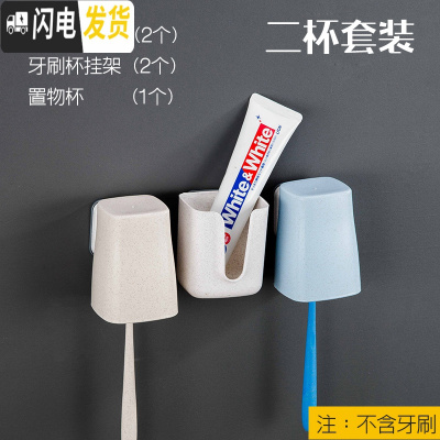 三维工匠刷牙杯架子置物架壁挂式四口三口之家免打孔牙缸漱口杯套装牙刷架 三口之家小麦秸秆牙刷架