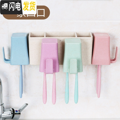三维工匠刷牙杯架子置物架壁挂式四口三口之家免打孔牙缸漱口杯套装牙刷架 五口之家小麦秸秆牙刷架