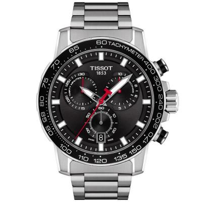 天梭(TISSOT)男士瑞士石英运动计时码表45mm黑盘防水不锈钢腕表
