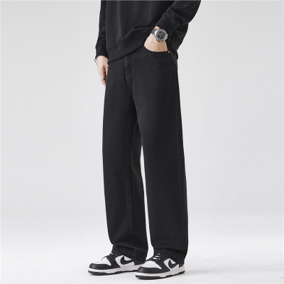 牛仔裤男士秋季新款美式复古水洗宽松黑灰直筒锥形休闲长裤子