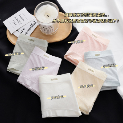 盒装4条纯棉女士内裤 印花可爱中腰内裤 蕾丝边无痕纯棉内裤女