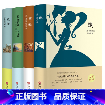 [正版] 飘+简爱+假如给我三天光明+童年 (精装全译本) 世界经典文学名著 外国小说 名家名译 全中文完整版图书