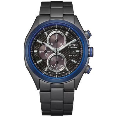 西铁城(CITIZEN)光动能男士石英计时腕表41mm黑不锈钢表带防水100米