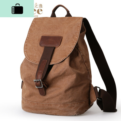 双肩包男女小背包时尚潮流休闲学生书包英伦帆布旅游旅行包NEW LAKE 成品洗水怀旧卡其色