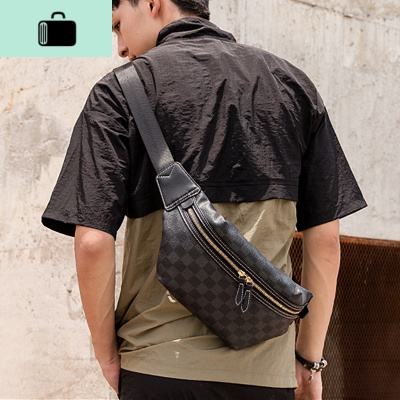 新款潮牌格子斜挎包男士腰胸包ins休闲个性背包小单肩包包NEW LAKE男士单肩包