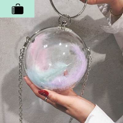 女包包2020新款潮网红高级感斜跨百搭洋气夏季链条斜挎ins小圆球NEW LAKE 透明羽毛随机发女斜挎包