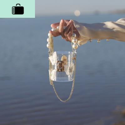 BAG仙女包 法式透明迷你珍珠手提水桶包2020新款潮链条斜挎包NEW LAKE女斜挎包