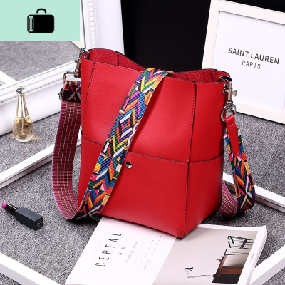 彩带水桶包2020新款撞色宽肩带斜挎包中母包休闲简约时尚女包NEW LAKE女斜挎包