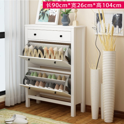 北欧实木超薄翻斗鞋柜家用口厅柜简约美式大容量收纳柜玄关柜