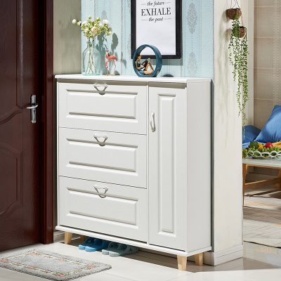 白色超薄翻斗鞋柜17cm简约现代家用实木北欧进简易阳台储物柜