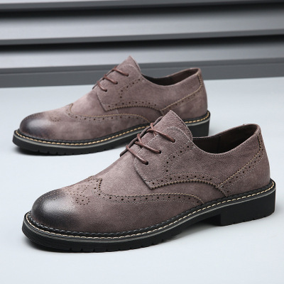 英伦风工装鞋子男真皮低帮板鞋复古休闲皮鞋男厚底轻便软底男鞋子