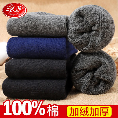 浪莎男士袜子加厚款纯棉秋冬毛圈袜吸汗透气防臭中筒棉袜运动长袜