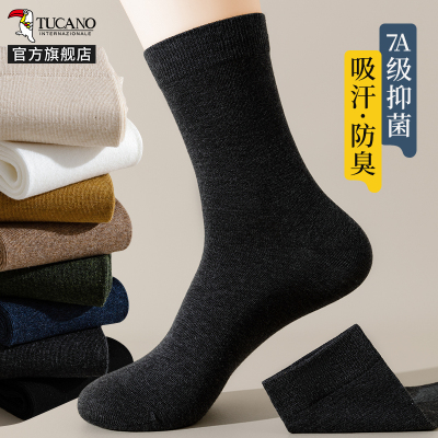 [7A抗菌]袜子男士长袜春秋款棉袜吸汗防臭男生运动黑色中筒夏季