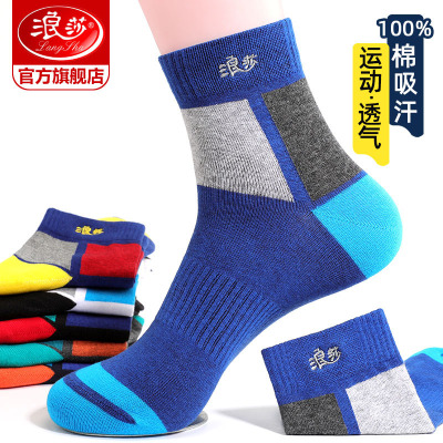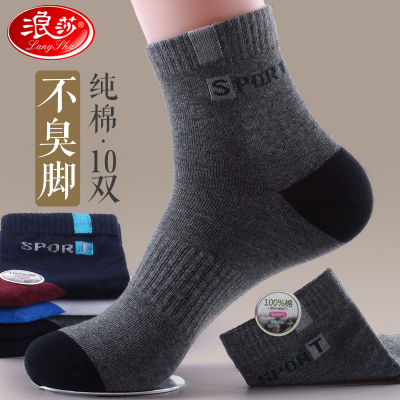 浪莎男式袜子男生春秋款纯棉防臭吸汗运动中筒袜100%全棉长袜夏季