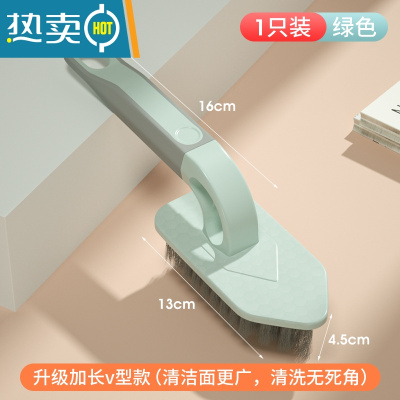敬平地刷厕所卫生间多功能去污清洁刷子浴室瓷砖墙面浴缸无死角地板刷 v型加长刷-浅绿