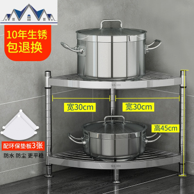 304不锈钢厨房三角形置物架转角架落地多层 放锅架子收纳架多功能 三维工匠