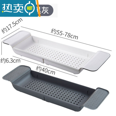 敬平伸缩沥水浴缸架卫生间浴室塑料洗澡盆置物架多功能收纳架子 [2个实惠装]白灰+黑灰浴室置物架