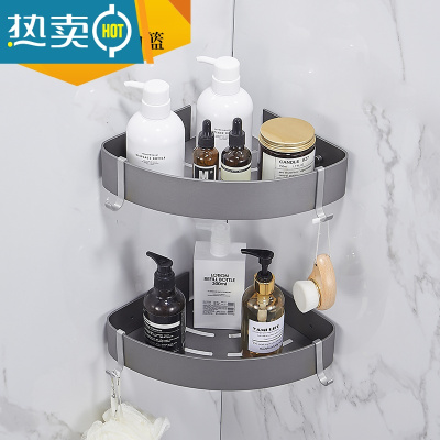 敬平北欧拉丝金卫生间置物架转角免打孔浴室收纳三角篮厕所角架太空铝 枪灰色双层角篮浴室置物架