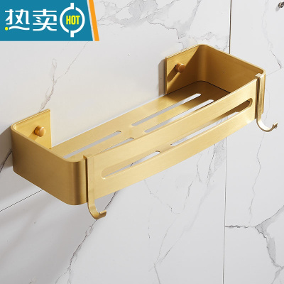 敬平北欧拉丝金卫生间置物架转角免打孔浴室收纳三角篮厕所角架太空铝 拉丝金单层四方篮浴室置物架