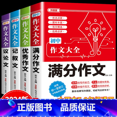 4件套 •[满分+优秀+记叙+议论]作文 初中通用 [正版]2024年人教版初中作文书中考满分作文作文大全1000篇七八