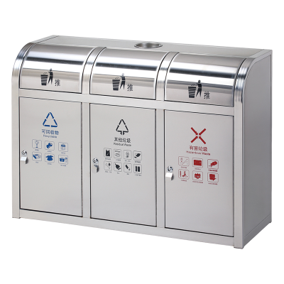 斯赞 联体密闭式不锈钢垃圾箱 三分类90*28*80cm 个
