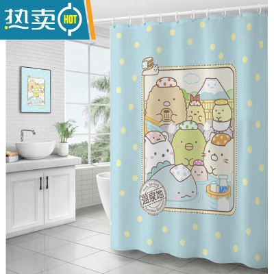 敬平卡通浴帘免打孔套装浴室加厚防水隔断帘卫生间洗澡遮挡布帘子