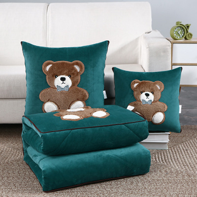 卡通小熊款超厚抱枕被子两用保暖靠垫车载卡通办公室午睡小被子