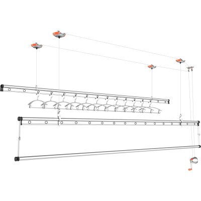 好太太晾衣架升降手摇双杆晒衣架神器家用阳台伸缩折叠三杆挂衣架D-1075讴歌红2.4米三杆+12个铝衣架+保修三年