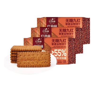 红谷林无蔗糖高纤9红饼干208g*3 粗粮饱腹 早餐代餐零食出行