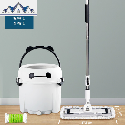 地拖甩水省力干湿两用拖头圆头拖把自动家用夹固式旋转双筒双驱动 三维工匠