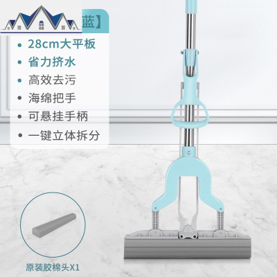 不锈钢吸水海绵拖把对折式挤水家用胶棉头浴室地拖布免手洗