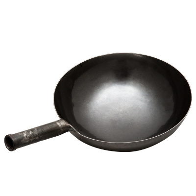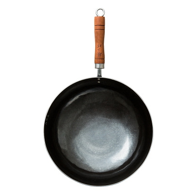 臻三环章丘手工铁锅手工锻打炒菜锅无涂层不易粘锅一人食铁锅家用炒菜 一人食木把蓝黑28cm