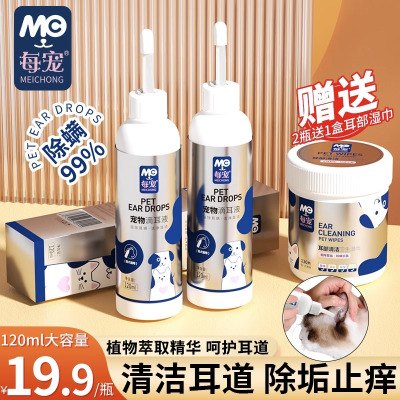 每宠宠物滴耳液除耳螨猫用狗狗耳朵清洗液清洁耳垢猫咪专用洗耳液120ml