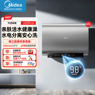 美的活水电热水器60L超薄扁桶双胆3300W节能速热水电分离免换镁棒F60-33UD5ProS(HE)