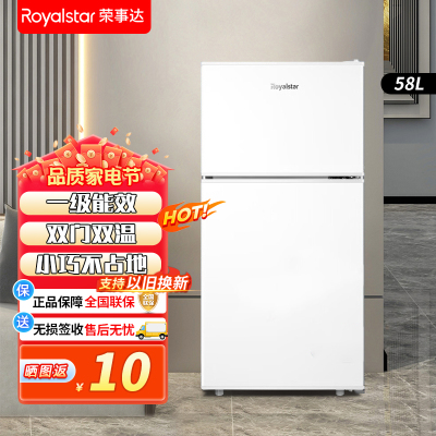 荣事达58升迷你冰箱小型双门电冰箱家用宿舍冷冻冷藏节能 冰箱一级能效 三天约一度电 76L9RSZ白色