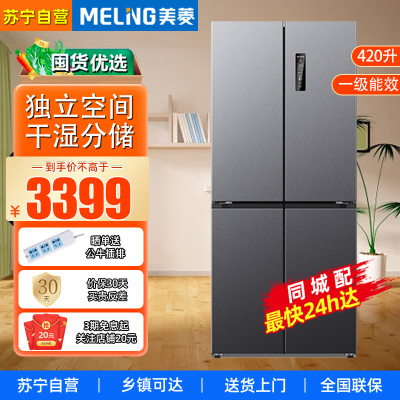 美菱(MELING) 420升超薄零嵌入式神秘灰十字对开门冰箱 全净化底部散热无霜多门电冰箱一级能效节能
