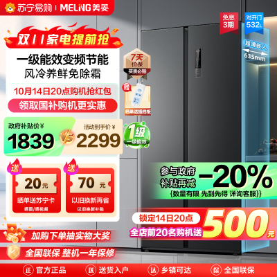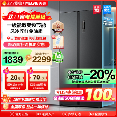 美菱532升对开门冰箱 一级能效风冷无霜超薄大容量双开门冰箱 自营净味电冰箱以旧换新BCD-532WPCX