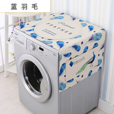 洗衣机盖布 防水防尘罩防尘布遮盖防灰尘家用冰箱微波炉机罩 盖巾 蓝羽毛 双开门冰箱(170*66cm)升级防水