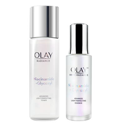 OLAY玉兰油美白抗糖爽肤水小白瓶精华液2件套装烟酰胺革糖素提亮补水保湿秋冬护肤