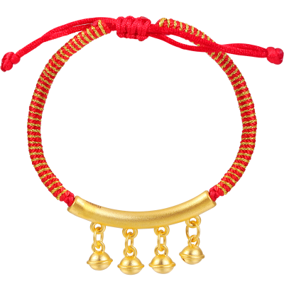 新金珠宝 黄金铃铛弯管手绳 一步一响铃铛红色编绳国风1042