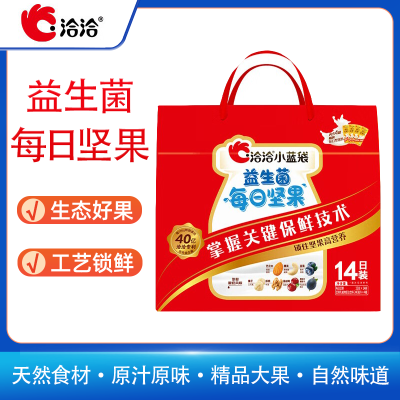 洽洽 小蓝袋益生菌每日坚果14日装混合坚果酸奶风味礼盒 (23g*14袋+坚果乳240ml*4罐)