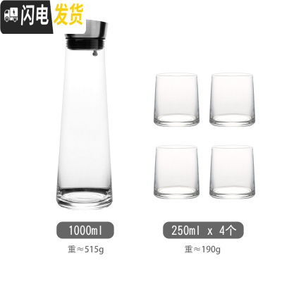 三维工匠玻璃水壶耐热防爆可高温凉水壶冷水壶家用透明凉白开果汁饮料扎壶 1.0单壶+4透明杯