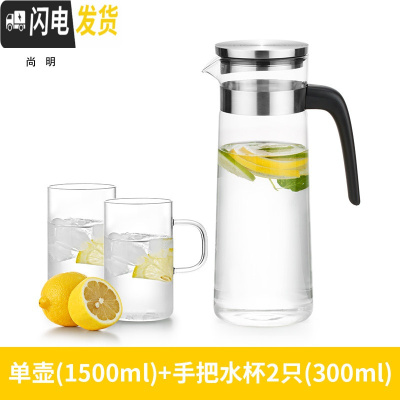 三维工匠可高温防爆玻璃大容量冷水壶 家用玻璃果汁凉水壶水杯套装 单壶+2个300手把水杯