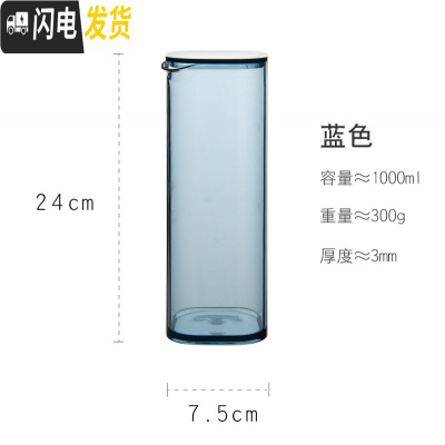 三维工匠可高温凉水壶家用 防爆防摔加厚PC冷水壶带盖果汁壶塑料扎壶餐厅 透明蓝色PC壶1