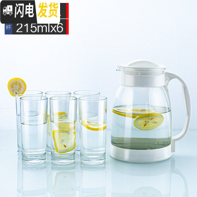 三维工匠冷水壶大容量玻璃可高温凉白开水杯茶壶家用果汁壶防爆凉水壶 白色2000+6个215水杯