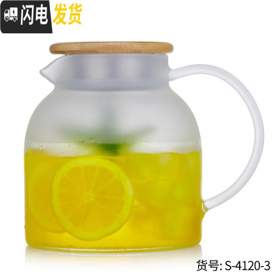 三维工匠可高温冷水壶花茶壶耐热玻璃泡茶壶竹盖大容量茶具凉水壶果汁扎壶 1000竹盖单壶
