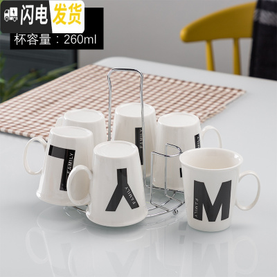 三维工匠水杯套装 家用冷水壶 陶瓷创意英文杯子可高温凉水壶大号果汁水具 黑色6杯+杯架FAMIY小格杯