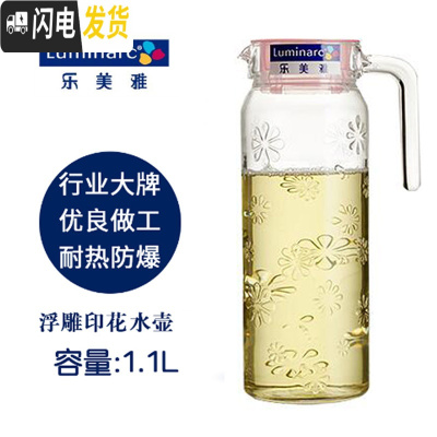 三维工匠家用耐热玻璃鸭嘴壶果汁饮料壶可高温凉水瓶冷大容量 印花朵趣水壶1.1+杯刷凉水壶